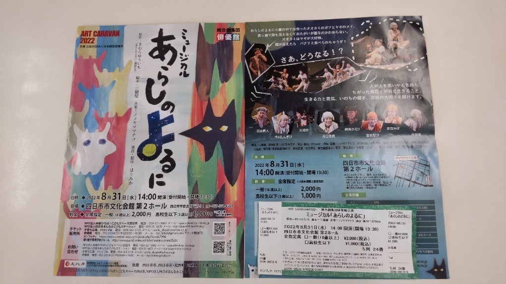 ミュージカルを観てきました 投稿者:海蔵学童保育所2022年8月31日2022年8月31日カテゴリー:行事 本日、夏休み最終日でした! 5,6年生は、 『あらしのよるに』というミュージカルを見ました。舞台は、映画やアニメとは違う良さがあり、興味をしめした児童がいました。 楽しい夏休みも終わります。明日からは、2学期、コロナに負けず、みんな、元気に、充実した毎日を過ごしてほしいです。2学期もよろしくお願いします! 関連