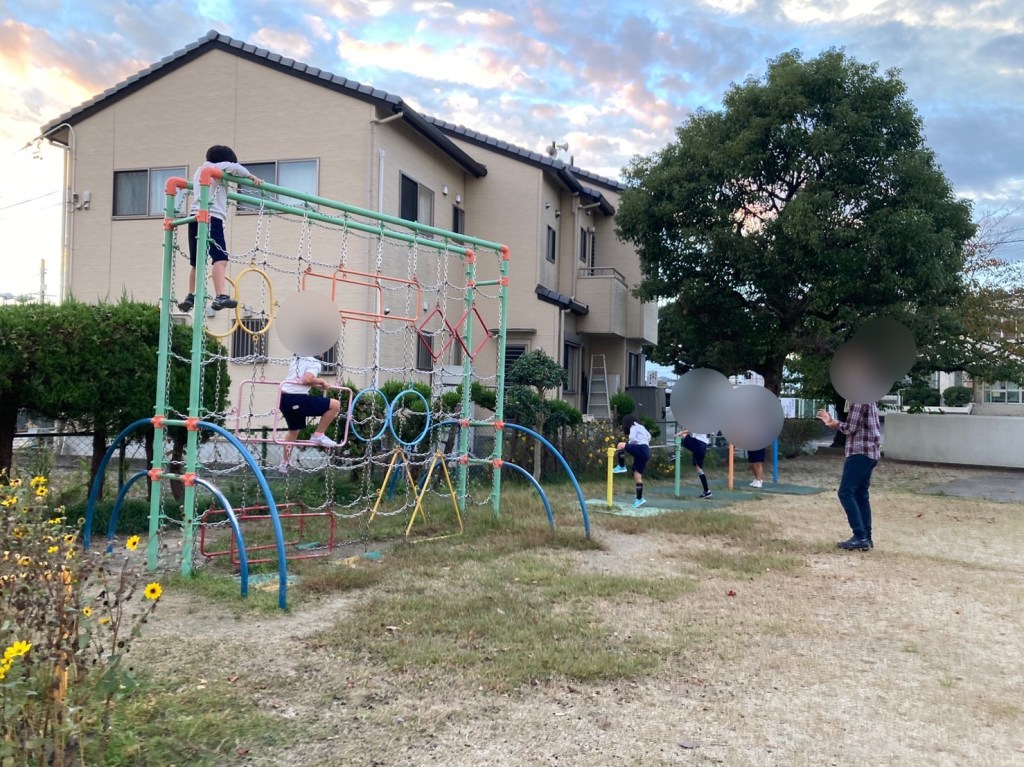 海蔵幼稚園で遊んでいます 投稿者:海蔵学童保育所2022年10月13日カテゴリー:ホームページ委員会、Kの活動報告 この日は海蔵幼稚園に遊びに行きました 海蔵学童では、日が落ちる前の5時ぐらいに海蔵学童の近くにある海蔵幼稚園で遊んでいます。海蔵学童には、フリスビーやボール、縄跳びなどいろいろな道具があるので、それで遊ぶこともできるし、海蔵幼稚園にある遊具で遊ぶこともできます。みんな、幼稚園に行けるとなると、外に出て楽しく遊んでいます。冬になると、日が短いので、なかなか遊ぶことができませんが、いける日はとてもうれしいです! 関連