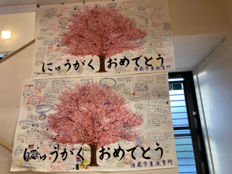 1年生入学おめでとう 投稿者:海蔵学童保育所2023年4月12日2023年4月12日カテゴリー:ホームページ委員会、Sの活動報告 1年生を、迎えるために、入学おめでとうの旗を、作りました。学童で何をやるのか学校の行事なども書いてありました。1年生を大きい旗で迎えることができました。 関連