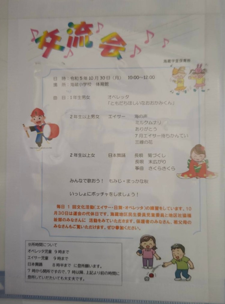 10月30日に、民生委員の方にオペレッタ・エイサー・日本舞踊をみせて、民生委員の方々と一緒ボッチャを楽しみました。