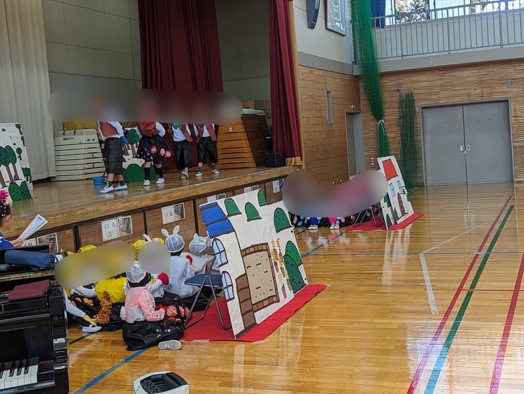 ↑この写真は、1年生のオペレッタです。「ともだちほしいなおおかみんくん」というオペレッタをしました。初めてのオペレッタでしたが、上手にできたのではないでしょうか?