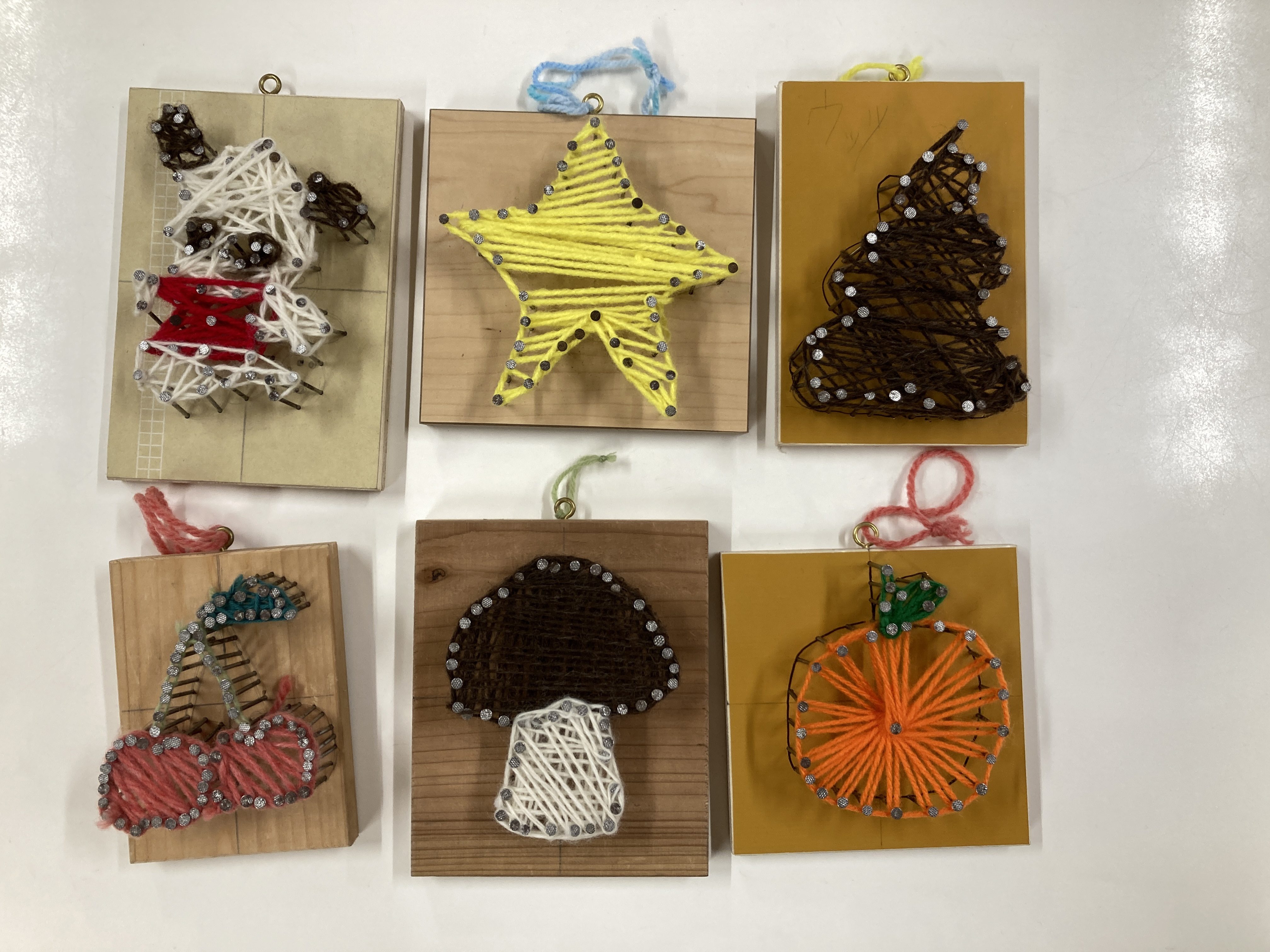 釘と毛糸で作品づくり 投稿者:海蔵学童保育所2023年11月2日2023年11月2日カテゴリー:ホームページ委員会、Mの活動報告 10/30に石垣木工製作所の石垣さんに手伝ってもらい、作品づくりをしました。 キャラクターや、食べ物など、それぞれ思い思いの作品を作っていました。ちなみに、作品の写真にあるキノコは私が作りました(笑) 関連