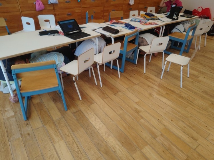 ひなん訓練 投稿者:海蔵学童保育所2024年9月18日カテゴリー:ホームページ委員会 ひなん訓練をしました。 つくえの下にかくれて身を守っていました。 つくえの下にかくれていた写真です つくえの下の足をもっている人もいました。 真剣に、ひなん訓練に取り組んでいました~! お昼ご飯は、・豚汁・わかめご飯・コロッケを食べました。 とても美味しかったです!!! 関連