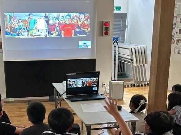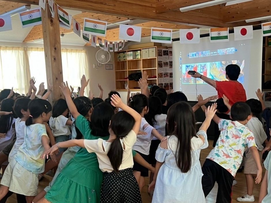 夏休みに世界タッチをしました 投稿者:海蔵学童保育所2024年10月9日2024年10月9日カテゴリー:ホームページ委員会、行事 夏休みにインドの小学生と交流しました。 これは、インドの小学生とあいさつをしているところでしょうか? 手をふっているひともいますね。 こちらも手を振っているようです。 楽しそうですね! こちらは、ダンスのまねをしているようです。 面白いポーズをしていますね。 関連