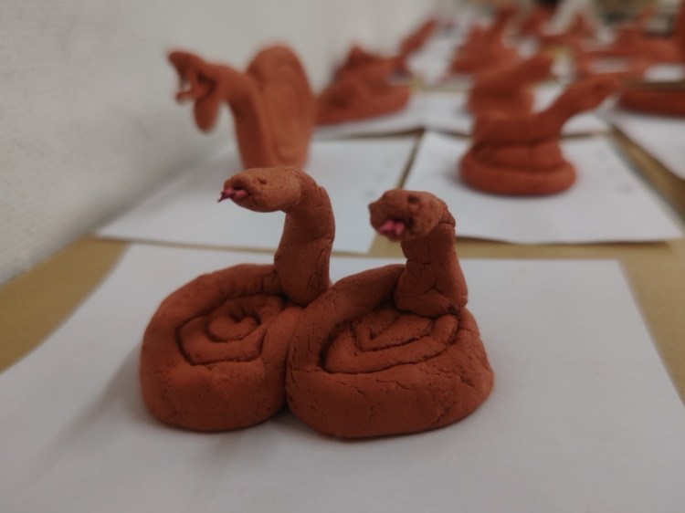 ねんどでヘビ作り! 投稿者:海蔵学童保育所2024年11月13日カテゴリー:未分類 来年の干支のヘビをみんなで作りました。 作っている様子です。 長く伸ばしていますね。 真剣にやっているのが伝わってきますね! いろいろな形のヘビがあります。 ぐるぐるしているヘビや、うねうねしているヘビがいて面白いですね。 2匹のヘビを作っている人もいます。 あまったねんどですごいのを作っている人もいますね! みんな楽しそうに作っていました。 素敵な作品が作れて良かったです! 関連