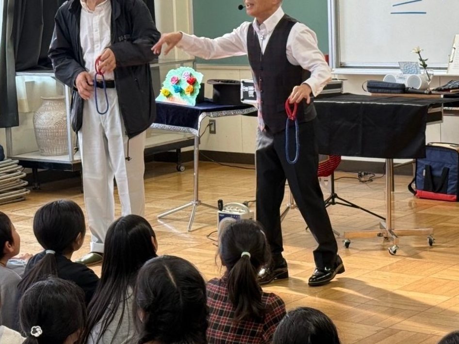 Mr.モリックさん 投稿者:海蔵学童保育所2024年11月13日カテゴリー:ホームページ委員会、行事 Mr.モリックさんが、11月 11日 月曜日に、マジックショーをしてくれました。 選ばれた6ねんせいは、まじっくを体験させて もらいました。 袋から、箱を何個も出したりするまっじくをしたり、 みんなが好きなジュースでもマジックをしてもらったりしていました。 他にもいろいろなマジックをしてくれました!! 最後に、握手をしてもらったりしてもらっている人もいました! 今後も海蔵学童保育所にマジックショーをしてくれるそうなので、マジックショーをお楽しみに!! 関連