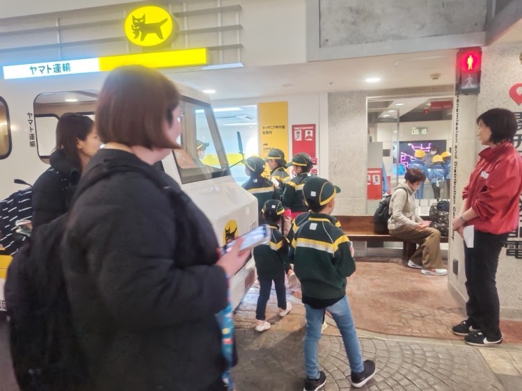 バスでは、まだ明るくなっていない外の景色をながめていたり、となりの席の子とお話ししていたり、おやつを食べていたりなど、いろいろなことをしてキッザニアまでの道を楽しんでいました。