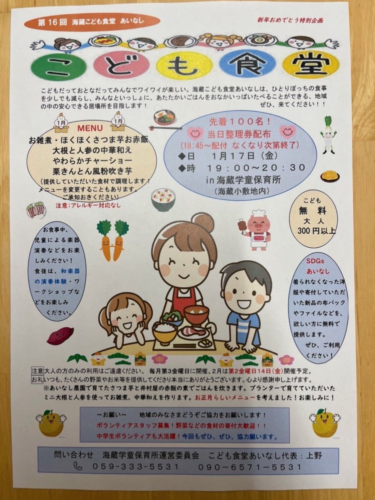 今回は第16回海蔵こども食堂あいなし のご案内です。