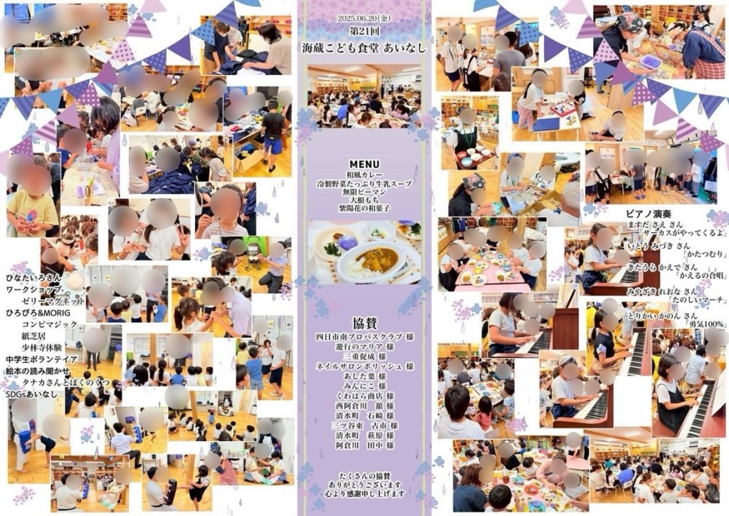 第21回海蔵こども食堂あいなしでした 投稿者:海蔵学童保育所2025年6月26日2025年6月26日カテゴリー:こども食堂、ホームページ委員会 今回もたくさんの方にご協力とご参加いただきました。 ありがとうございました! 7月は12日土曜日です。 曜日と時間がいつもと違います。 なぜなら… 夏祭り同時開催だからでーす! 案内の準備が整いましたら、ご案内しますのでお楽しみに! 関連