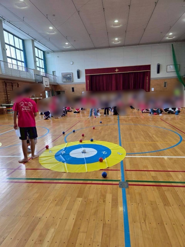文化発表のあとは、みんなで一緒にボッチャをしました。