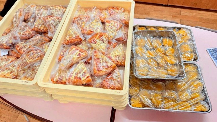 今回のこども食堂のメニューは、クリームシチュー、ピザパン、バレンタインデザートでした!