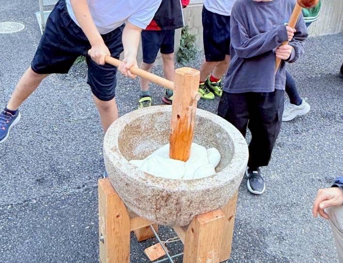 重たい杵を持って順番にお餅をつきました。